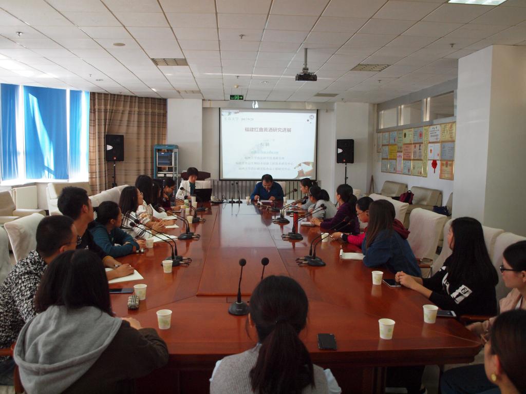 在綜合教學(xué)樓B區(qū)2樓會議室,倪莉教授給我校食品學(xué)科部分老師和研究生作了“福建紅曲黃酒研究進(jìn)展”的學(xué)術(shù)報告;主要介紹了自己在紅曲黃酒發(fā)酵菌種的鑒定、紅曲黃酒的風(fēng)味、紅曲黃酒的生理活性等方面的最新研究成果。我校食品科學(xué)系牟莉老師和與會師生,在紅曲黃酒的食療功能、紅曲色素穩(wěn)定性、紅曲發(fā)酵污水處理等方面,與倪教授進(jìn)行了深入探討。
